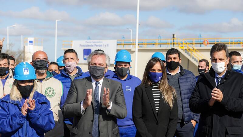 Al día siguiente de la peor noticia en pandemia, Fernández volvió a mostrarse junto a Axel Kicillof, que de una forma u otra plesbicitará su gestión en los comicios; en un evento con Malena Galmarini como protagonista por ser una inauguración de Aysa en Presidente Perón. No faltó en el público, además de intendentes como el rumoreado Martín Insaurralde (Lomas de Zamora), el socio todista Sergio Massa.
