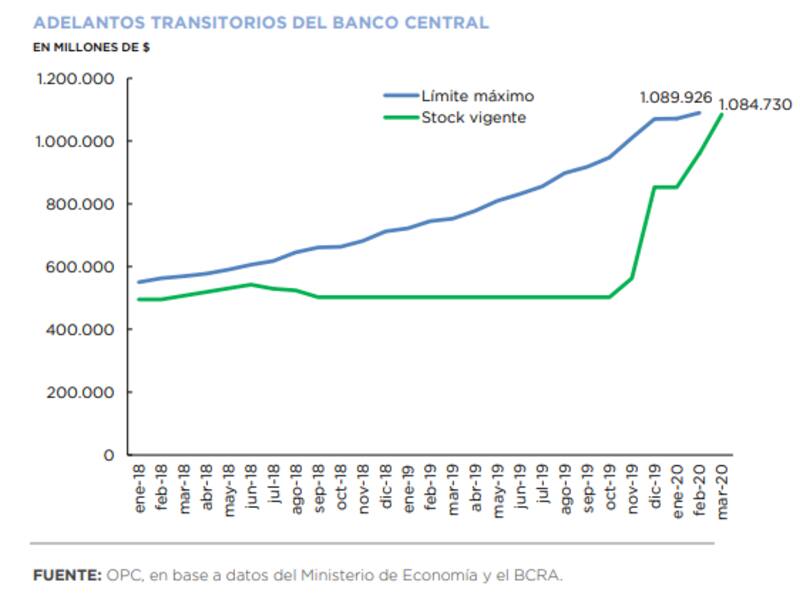 Es que el nivel de emisión, que se instrumenta bajo la forma bajo la forma de adelantos transitorios (AT) del Central al Tesoro, está casi al límite que permite la Carta Orgánica de la autoridad monetaria en su artículo número 20.