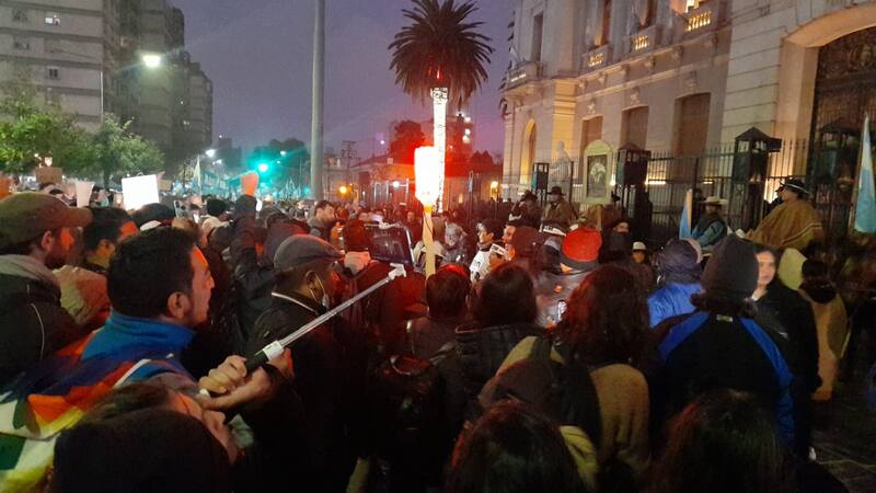 Pese a que las protestas iniciaron frente a la Legislatura jujeña donde se juró la nueva Constitución por la mañana, en estos instantes los manifestantes se dispersaron por buena parte de la ciudad, cubriendo hasta 20 cuadras a la redonda del edificio oficial.