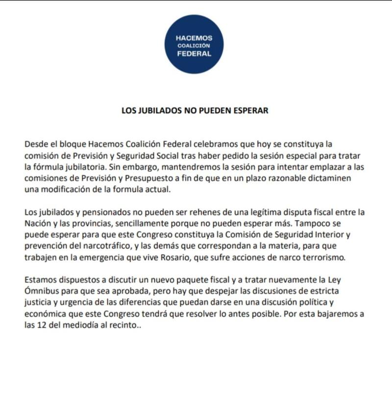En Hacemos Coalición Federal que reúne 23 diputados también hubo ausencias llamativas: apenas asistieron 18. Salvo Margarita Stolbizer, que estaba de viaje, los cordobeses de Llaryora y el entrerriano que responde a Frigerio, se ausentaron pese a que habían sido los que convocaron a la sesión fueron ellos mismos.