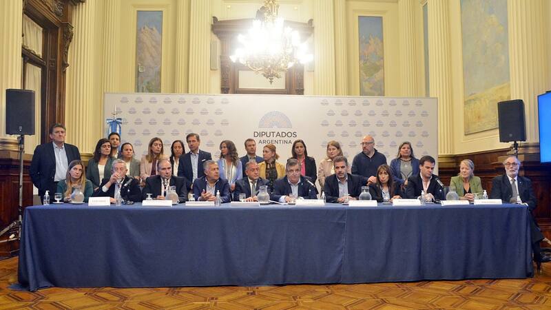 "Hace pocos minutos, tanto en Diputados como en el Senado, volvimos a pedir por nota a Sergio Massa y a Cristina Kirchner que de forma inmediata y sin dilaciones procedan a las designaciones de la diputada Reyes y del senador Juez. Cualquier otra conducta puede llevar a un camino de gravedad institucional que le hará muy mal al país", dijo Mario Negri, presidente del bloque de diputados de la UCR, apenas se puso en marcha la conferencia de prensa, que se celebró en el salón Delia Parodi.