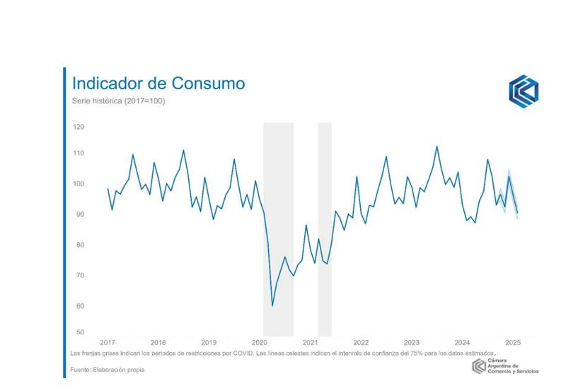 El Indicador de Consumo (IC) de la Cámara Argentina de Comercio y Servicios (CAC) mostró en febrero de 2025 un avance del 2,9% en la comparación interanual, marcando una tendencia positiva en el consumo de los hogares. Este crecimiento se dio en un contexto en el que la inflación registró un leve repunte, alcanzando el 2,4% mensual, luego de una desaceleración sostenida desde diciembre de 2023.