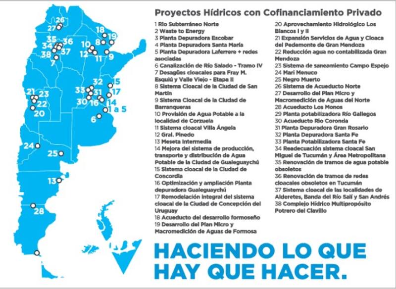 El Gobierno lanzó una convocatoria de alcance nacional e internacional a empresas privadas para asociarse con el Estado en la financiación de 38 proyectos hídricos en todo el país por un valor de casi 9500 millones de dólares.