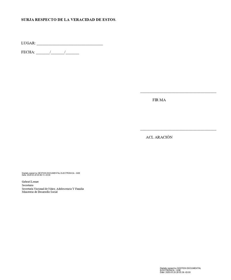 La norma establece que el progenitor, referente afectivo o familiar que tenga a su cargo realizar el traslado, debe tener en su poder una declaracio n jurada a fin de ser presentada a la autoridad competente, junto con el Documento Nacional de Identidad del nino, nina o adolescente, a los fines de corroborar la causa de ese movimiento. El formulario de esta declaración está en la página web del ministerio.