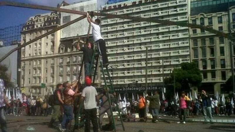 Militantes de la Corriente Villera Independiente (CVI) instalaron este mediodía una carpa frente al Obelisco porteño e iniciaron una huelga de hambre para exigirle a la Ciudad la “urbanización con radicación” y plantear otra serie de reclamos al jefe de Gobierno porteño, Mauricio Macri.