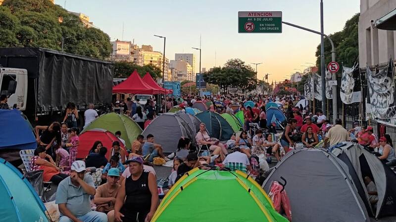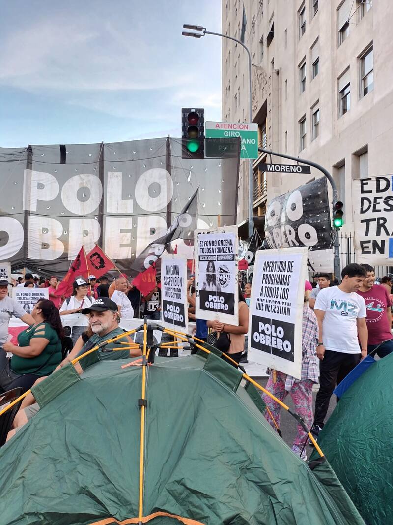 "Se instaló el acampe piquetero en la 9 de julio y en todo el país, por tiempo indeterminado. A estas horas de la tarde, miles de carpas rodean el Ministerio de Desarrollo Social reclamando una reunion urgente con la ministra Toloza Paz. Contra las miles de bajas en el programa potenciar trabajo y en reclamo de los alimentos a los comedores populares que no llegaron en el mes de febrero", dijeron a El Cronista desde el Polo Obrero.