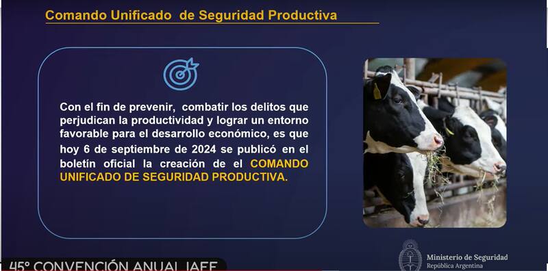 "Hemos creado un comando unificado de seguridad productiva con una mirada nueva de la seguridad, porque hasta ahora ha sido tomado como casos aislados", arrancó su presentación.