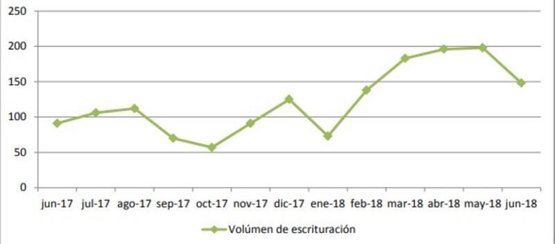 Sin embargo, cuando se analiza la evolución mensual de la cantidad de escrituras, para el sexto mes del año, se registró una fuerte caída, producto de la "volatilidad" del tipo de cambio.