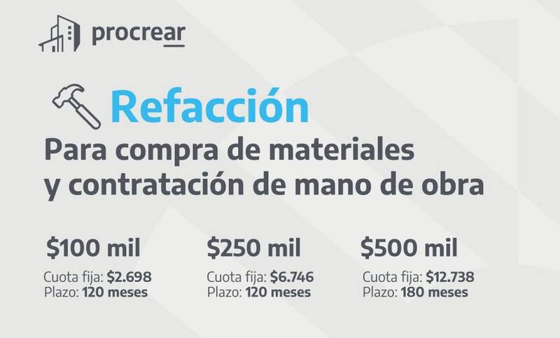 - Mejoramientos Refacción: destinado a mejorar las condiciones habitacionales de las viviendas (aislación, terminación de núcleos húmedos, pisos, carpinterías, pintura, instalaciones sanitarias o eléctricas). Habrá 70.000 para todo el país, con tasa fija del 24%; que se dividen en: