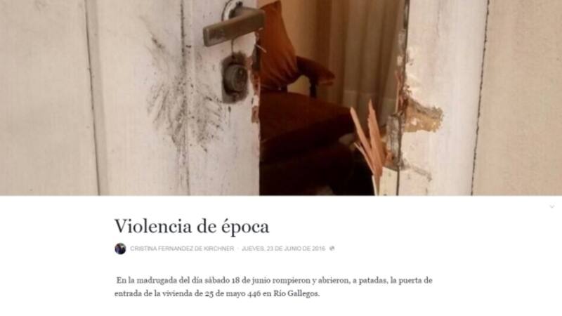 A través de una carta difundida en las redes sociales, la expresidenta Cristina Kirchner reveló que la puerta de la casa de los padres de Néstor Kirchner en Río Gallegos fue violentada a patadas pero no asaltada. Además, aseguró que se “arman causas judiciales de funcionarios del Gobierno anterior a diestra y siniestra, que se dan de patadas con la Constitución .