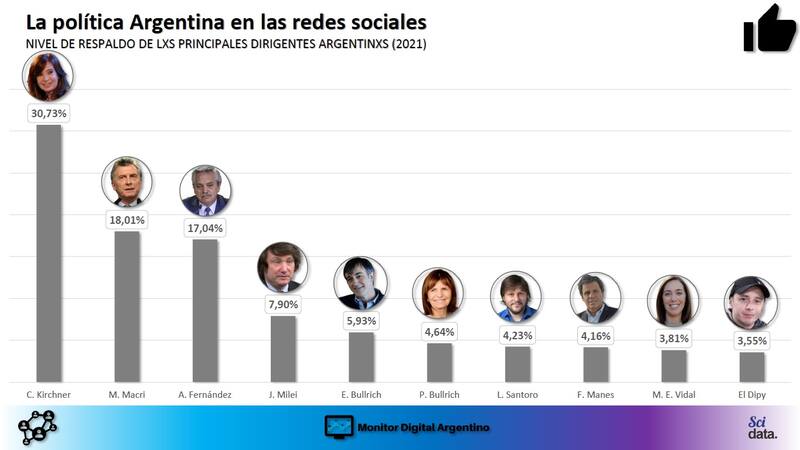 Las redes sociales se convirtieron en un lugar de relevancia para la discusión política. Los principales dirigentes buscan posicionarse de la mejor manera para transmitir sus mensajes. Un estudio de SciData muestra cuáles tuvieron más y menos éxito a lo largo de 2021 en Twitter, Facebook e Instagram.