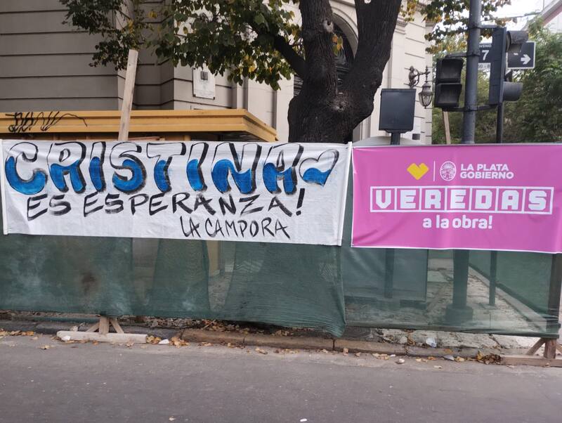 Rumbo a La Plata, una serie de pasacalles explicitan el operativo clamor. "Cristina, La matanza está con vos. Por una nueva Argentina", reza uno de los carteles. Otro dice "Cristina es esperanza. La Cámpora". Hoy un grupo de intendentes bonaerenses reforzaron su apuesta en favor de la Vicepresidenta.