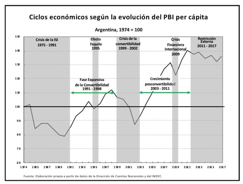 Si se analiza el PBI per cápita, se puede ver como durante la etapa de oro y una vez superado el Efecto Tequila tuvo una gran expansión, pero desde 1998 el régimen entró en una crisis definitiva con desaceleración del crecimiento.