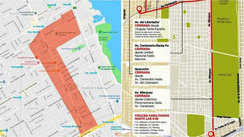Por su parte, la municipalidad de Vicente López comunicó que las inmediaciones de la Quinta Presidencial también se verán afectadas entre el viernes y el domingo. Se estima que Mauricio Macri podría mantener algunos de los encuentros bilaterales allí.