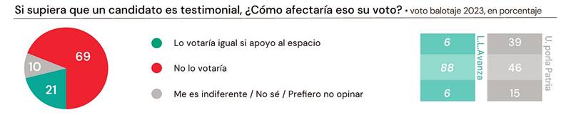 El dato exhibe un límite en la estrategia electoral de las diferentes fuerzas, ya que un 88% de los libertarios aseguran que no votarían a un candidato que no esté dispuesto a asumir el cargo, mientras que 46% de quienes optaron en 2023 por Unión por la Patria tampoco lo harían.