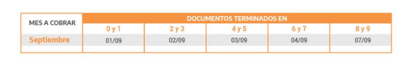 - Martes 8 de septiembre: DNI terminados en 0.