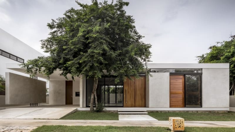 El modelo de referencia es una casa unifamiliar de 315 m² cubiertos, construida en dos plantas sobre un lote de 800 m², con jardín y espacio para estacionamiento.