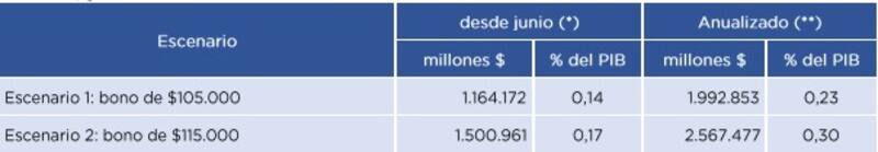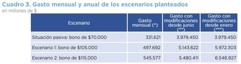 También se calculó qué gasto le implicaría al Estado aumentar el bono, que se encuentra congelado desde marzo de 2024 en $ 70.000.