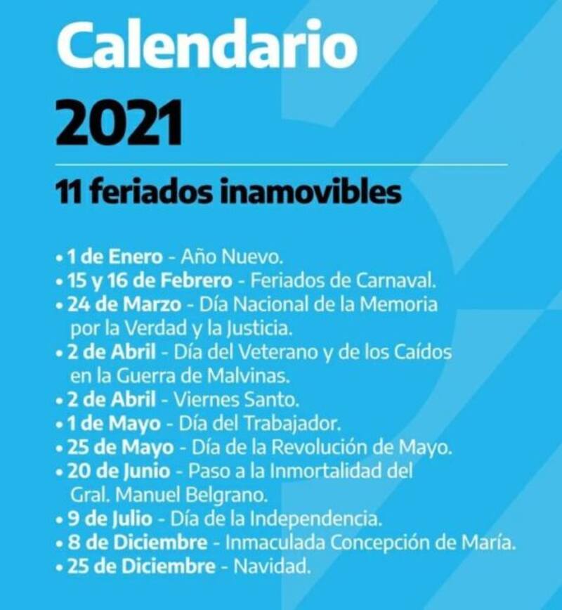 A 21 días del próximo feriado largo por el Día del Respeto a la Diversidad Cultural, de acuerdo al calendario oficial, restan cuatro celebraciones más en este 2021: