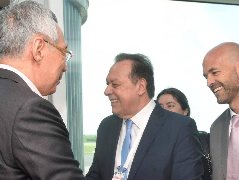 El primer ministro de Singapur, Lee Hsien Loong, fue recibido por los ministros de Transporte, Guillermo Dietrich, y de Turismo, Gustavo Santos.