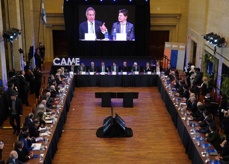 Tras la reunión de coordinación con Economía y el Banco Central en Olivos, el flamante ministro de Desarrollo Productivo, Daniel Scioli, se reunió con los empresarios pyme de Cgera, visitó a los industriales en la UIA y cerró la jornada con CAME, en medio de preocupaciones de los privados por el acceso a divisas para importaciones, los faltantes de energía y combustible y el financiamiento, además de la siempre presente inflación.