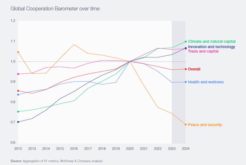 Como previa a la reunión anual del World Economic Fórum en Davos, Suiza, entre el 19 y 23 de enero, para la que ya confirmó participación Javier Milei, la organización analizó el grado de cooperación en áreas clave. Así, el Global Cooperation Barometer evaluó que si bien la cooperación internacional se mantiene estable, cambió de forma.
