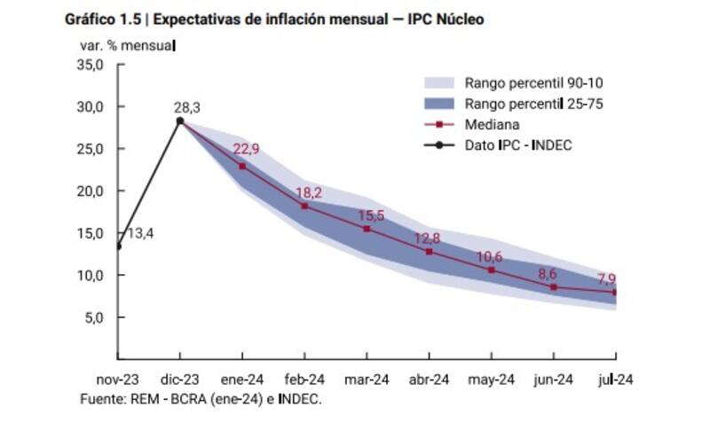 El relevamiento se realizó entre los días 29 y 31 de enero de 2024, con la colaboración de 37 participantes, y llega en un momento marcado por la alta inflación de diciembre que fue del 25,5%.
