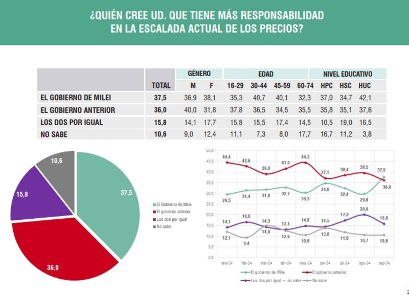 Sin embargo, la principal novedad está en otro lado. "Por primera vez la asignación de responsabilidades respecto de la inflación: hasta agosto persistía una imputación mayor al gobierno de Alberto Fernández".