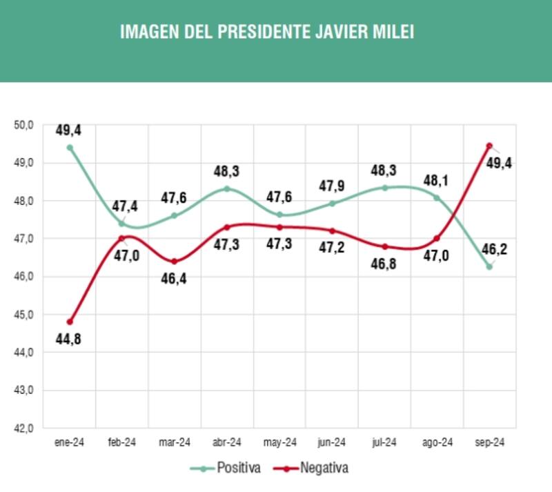 La evaluación de la administración Milei y su manejo de la economía tienen un rechazo, cada vez más consolidado en torno al 50 por ciento de los encuestados, mientras que la aprobación en ambos sentidos está en torno al 36 por ciento. El 62 por ciento, además, cree que la situación de trabajadores y jubilados será igual o peor dentro de un año.