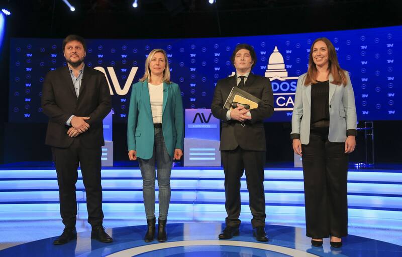 Según informó la señal Todo Noticias, el orden de los atriles donde estuvieron ubicados fue determinado por sorteo. Así quedaron organizados del siguiente modo: Santoro, Bregman, Milei y Vidal.