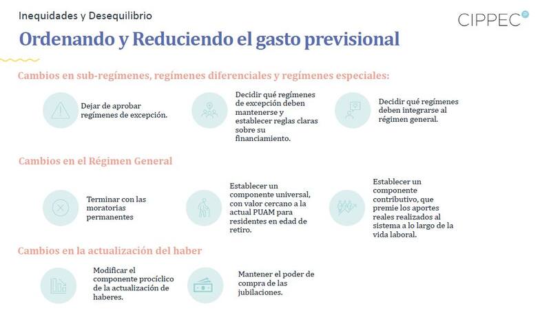Por el lado del régimen general, CIPPEC impulsa el freno de las moratorias permanentes, establecer un componente universal similar a la actual PUAM para residentes en edad de retiro y establecer un componente contributivo que premie los aportes reales realizados al sistema a lo largo de la vida laboral.