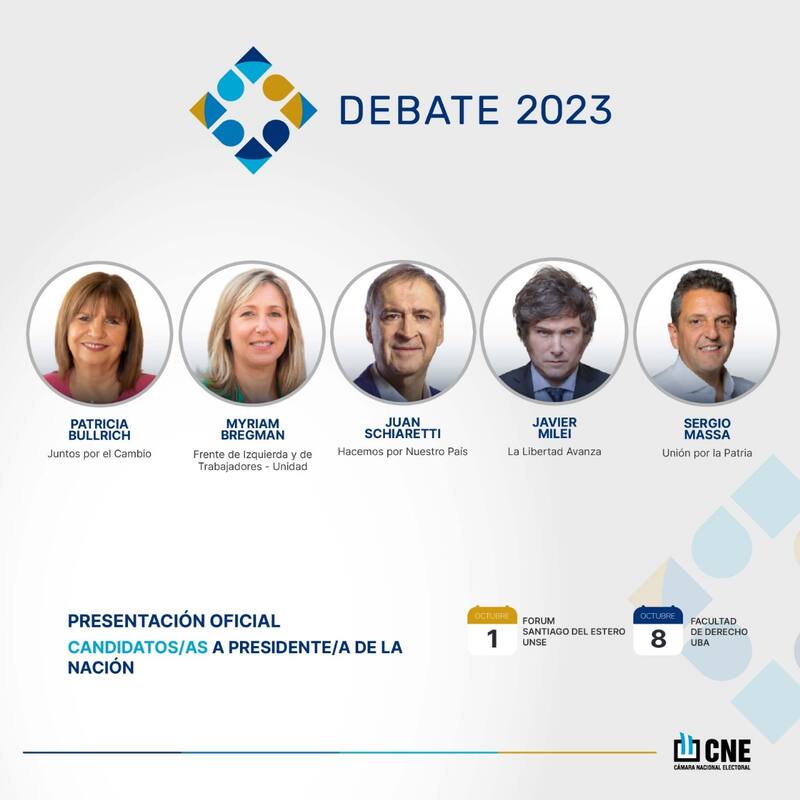 En esta edición participarán los cinco candidatos que superaron las PASO: Javier Milei (La Libertad Avanza), Patricia Bullrich (Juntos por el Cambio), Sergio Massa (Unión por la Patria), Juan Schiaretti (Hacemos por Nuestro País) y Myriam Bregman (Frente de Izquierda y de Trabajadores-Unidad).