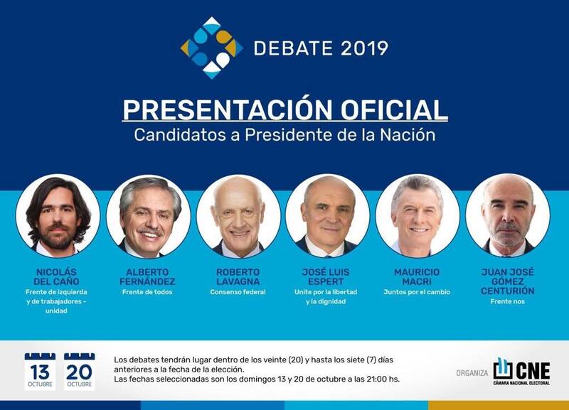 La Cámara Nacional Electoral (CNE), a cargo de la organización del debate, dio a conocer hoy los temas que discutirán los seis candidatos a presidente que por ley deben participar de los dos encuentros que se realizarán en la ciudad de Santa Fe (13 de octubre) y en Buenos Aires (20 de octubre).