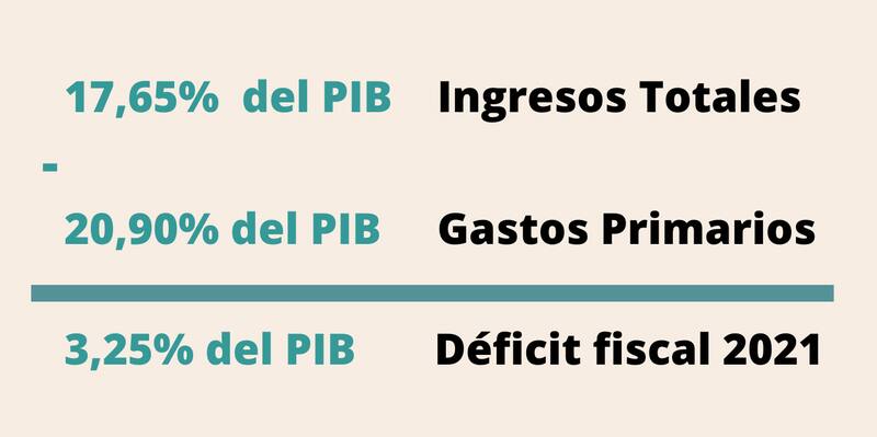 El año pasado los ingresos totales del sector público fueron el 17,65% del Producto Interno Bruto (PIB), mientras que el gasto primario fue equivalente a 20,90% del PIB.