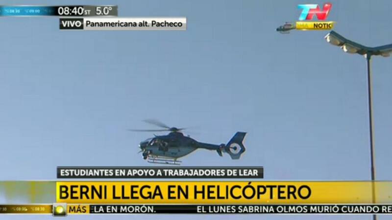 En el lugar se realizaba un amplio operativo de la Gendarmería Nacional y la Policía provincial. El toque de color del operativo lo dio el secretario de Seguridad, Sergio Berni, en un sobrevuelo en helicóptero sobre la zona de la protesta. Las imágenes de TV dejaron ver incluso al funcionario asomado por la puerta del helicóptero.