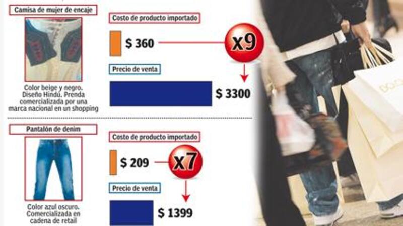 A su vez, en el caso de un jean comercializado por una cadena de retail, su costo por traerlo del exterior es de $ 209 y el consumidor lo paga en el local a $ 1399 (multiplica por 7).