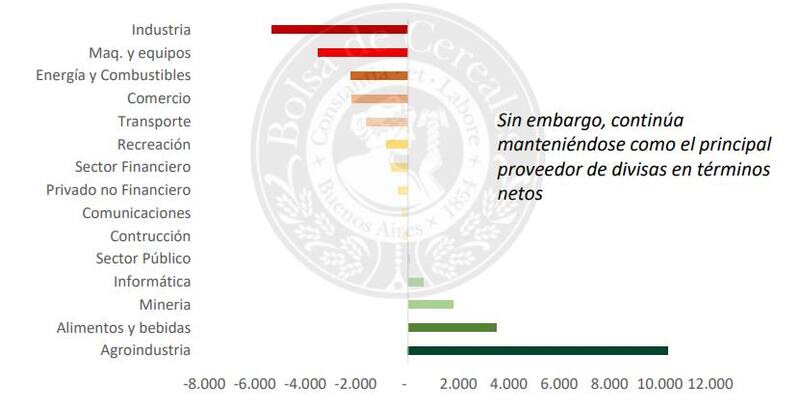 Sin embargo y pese al feroz retroceso en la comparación sectorial, la agroindustria, continúa manteniéndose como el principal proveedor de divisas en términos netos.