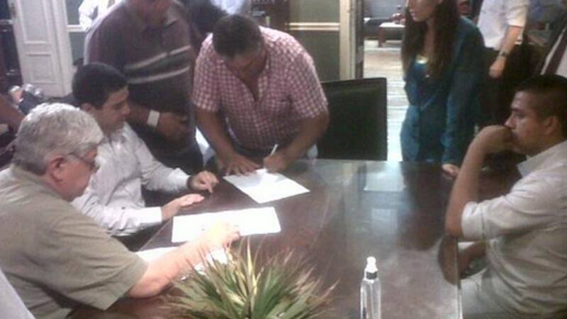 "Los policías firman el acuerdo", escribió Marcelo Ditinis en su cuenta de Twitter, secretario de Prensa y Difusión de Tucumán, acompañando el posteo con una foto, y luego completó: "Los policías vuelven a las calles".