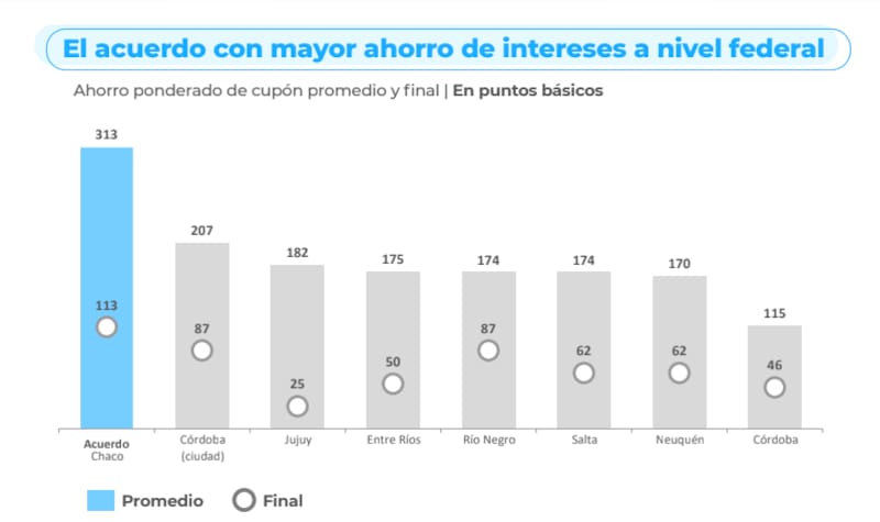 Es el acuerdo provincial con mayor ahorro de intereses de los realizados hasta el momento: 313 puntos básicos en promedio y 113 pbs final.