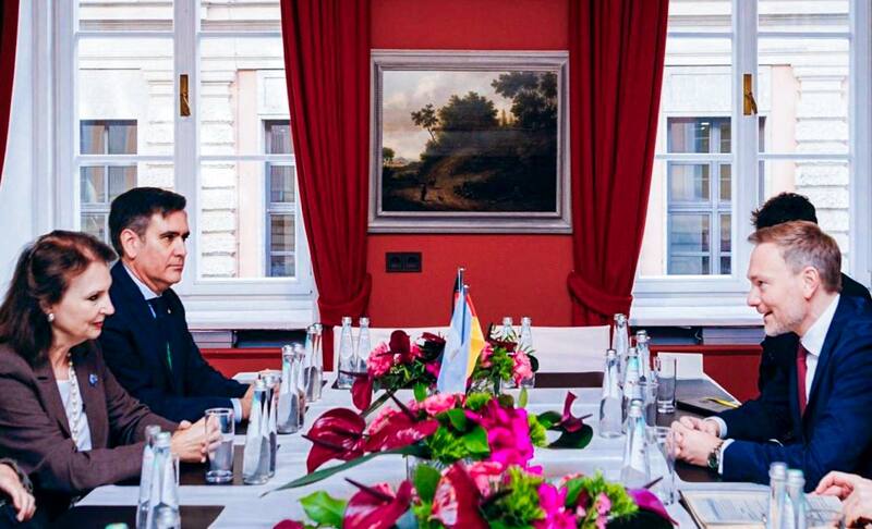 A través de un comunicado de prensa, se señaló que "el Ministro Lindner transmitió a Mondino los informes positivos recibidos por parte de sus equipos y destacó el superávit fiscal tanto primario como financiero".