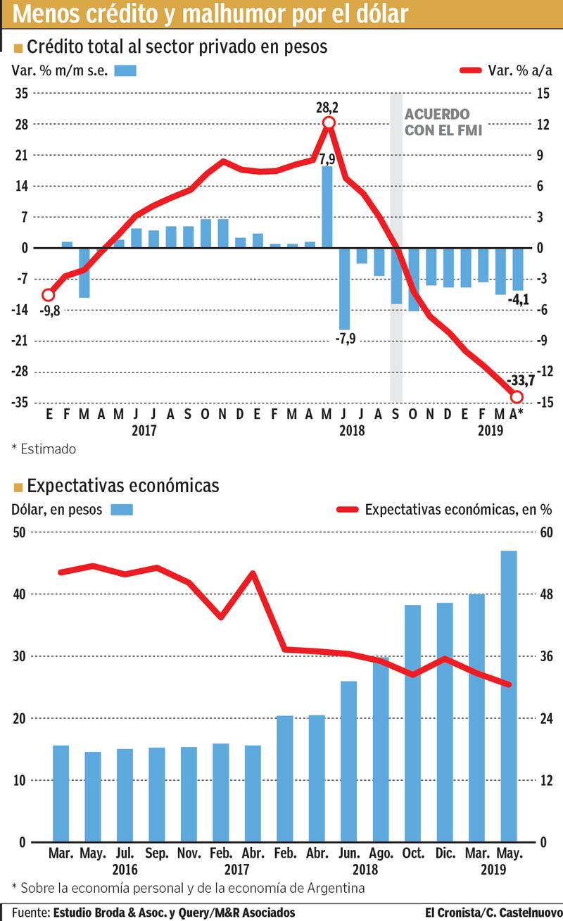 Pero mientas tanto, la caída del crédito en abril fue de hasta el 33,7% respecto de un año atrás. Sólo el mes pasado, el apretón monetario implicó una caída mensual de 4,1% en la oferta de crédito privado.