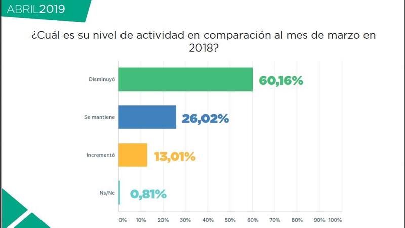 En extraña correlación, el 60,16% de los empresarios -similar a la proporción de votantes de Schiaretti- respondió que disminuyó su actividad en comparación con el mismo mes de 2018. El 26% del universo había mantenido la actividad, y solamente 13% la incrementó respecto de un año antes.