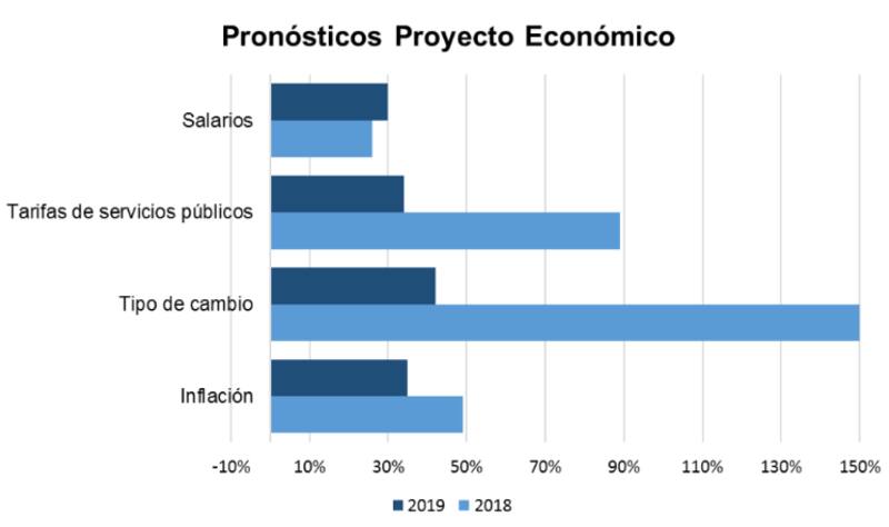 Por el otro lado, afirman,“un segundo año de recesión hará que la variación general de precios sea menor a la de 2018 . Con esos datos en la balanza, proyectan una inflación de alrededor del 35%.