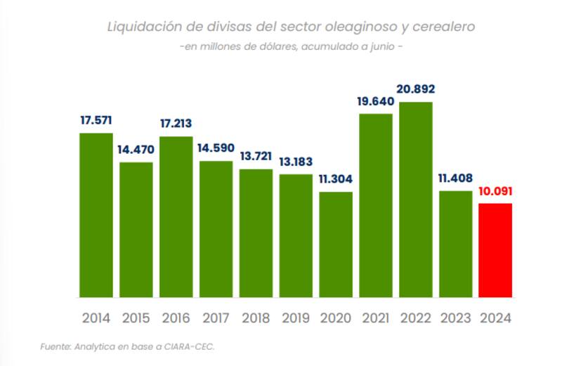 A la espera de la llegada de dólares, ya sean fondos de organismos multilaterales, un nuevo programa con el FMI, blanqueo o inversiones, la llave de corto plazo para solventar reservas sigue en los dólares del campo.