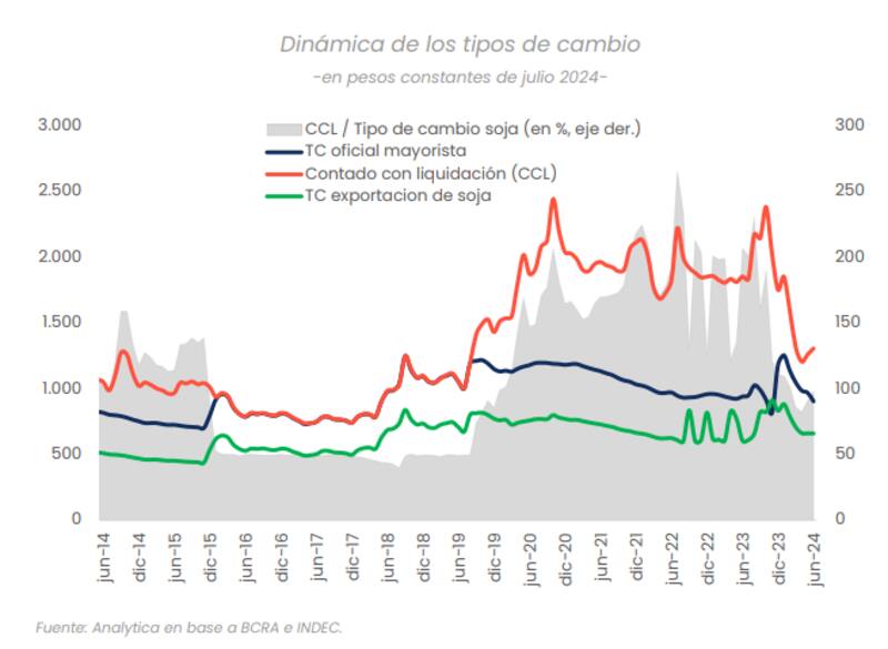 "El tipo de cambio oficial se aprecia y el blend es aún más bajo", indicaron sobre el tipo de cambio especial para exportadores, 80% al oficial y otro 20% al CCL. "Una brecha cambiaria más baja podría impulsar la liquidación", indicaron.