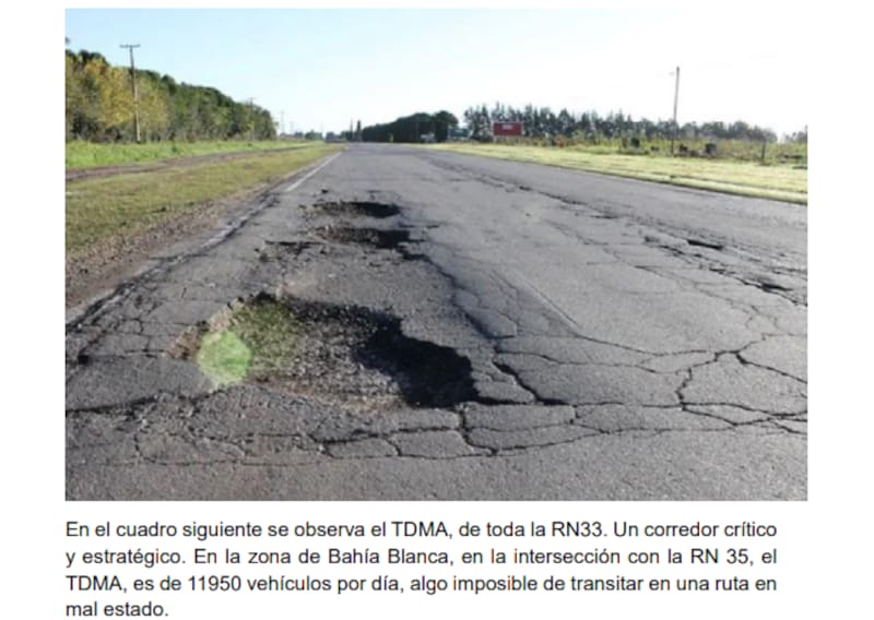 La ruta nacional número 33 está en Estado, malo a crítico, se define como “uno de los más críticos del país”.