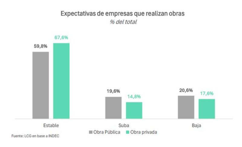 "Esta recuperación sin embargo no se trasladó tan evidentemente a la encuesta sobre las expectativas de la actividad. Dentro de las empresas que realizan obras privadas, aumentó la percepción de que la actividad empeorará: 18% espera caída de la actividad vs. 12% en la previa", destacaron los especialistas de LCG.