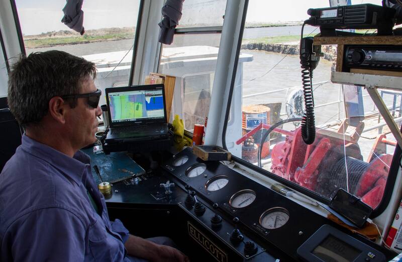 Allí las dragas, pequeñas embarcaciones que chupan tierra y agua del río, trabajan con el objetivo de llevar su longitud de 50 a 200 metros y su profundidad de 3 a 5 metros. Estan a cargo de la UTE Helport-Chediack.