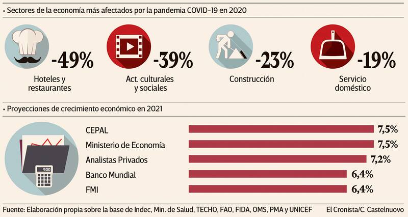 FRAGILIDAD ECONÓMICA. El documento revela que durante la pandemia la actividad económica se contrajo un 9,9%, la mayor caída anual desde la crisis de 2001/2002. Este descenso se explicó por las restricciones a la circulación, la elevada incertidumbre y los menores flujos de comercio internacional.
