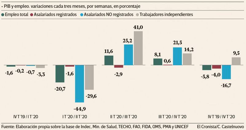 POBREZA. Durante el 2020, los efectos de la pandemia Tuvieron un "impacto significativo sobre los niveles de pobreza monetaria". Así, se detalló el aumento del 35,5% de pobreza en 2019 al 42% en el segundo semestre de 2020. Y la pobreza extrema, por su parte, aumentó del 8% al 10,5%.